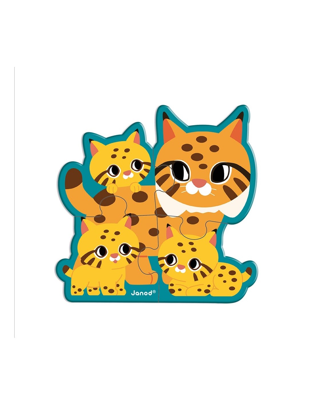 Un surtido de 5 puzles evolutivos con la temática de los animales. El número de piezas corresponde al número de animales de la ilustración y aumenta progresivamente para acompañar al niño en su progreso. Además, un contorno de color facilita el reconocimiento de las diferentes piezas. Los puzles están compuestos por 2, 3, 4, 5 y 6 piezas. Cartón con certificación FSC y tintas vegetales. Fabricado en Francia.
